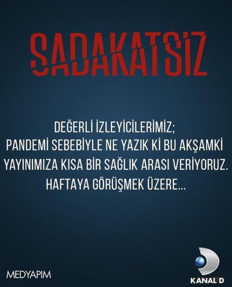 Kanal d bugün yeni bölüm yayınlamayacağına dair bir açıklama da yaptı sadakatsiz yeni bölüm. Dizinin yeni bölümü haftaya yayınlanacak.